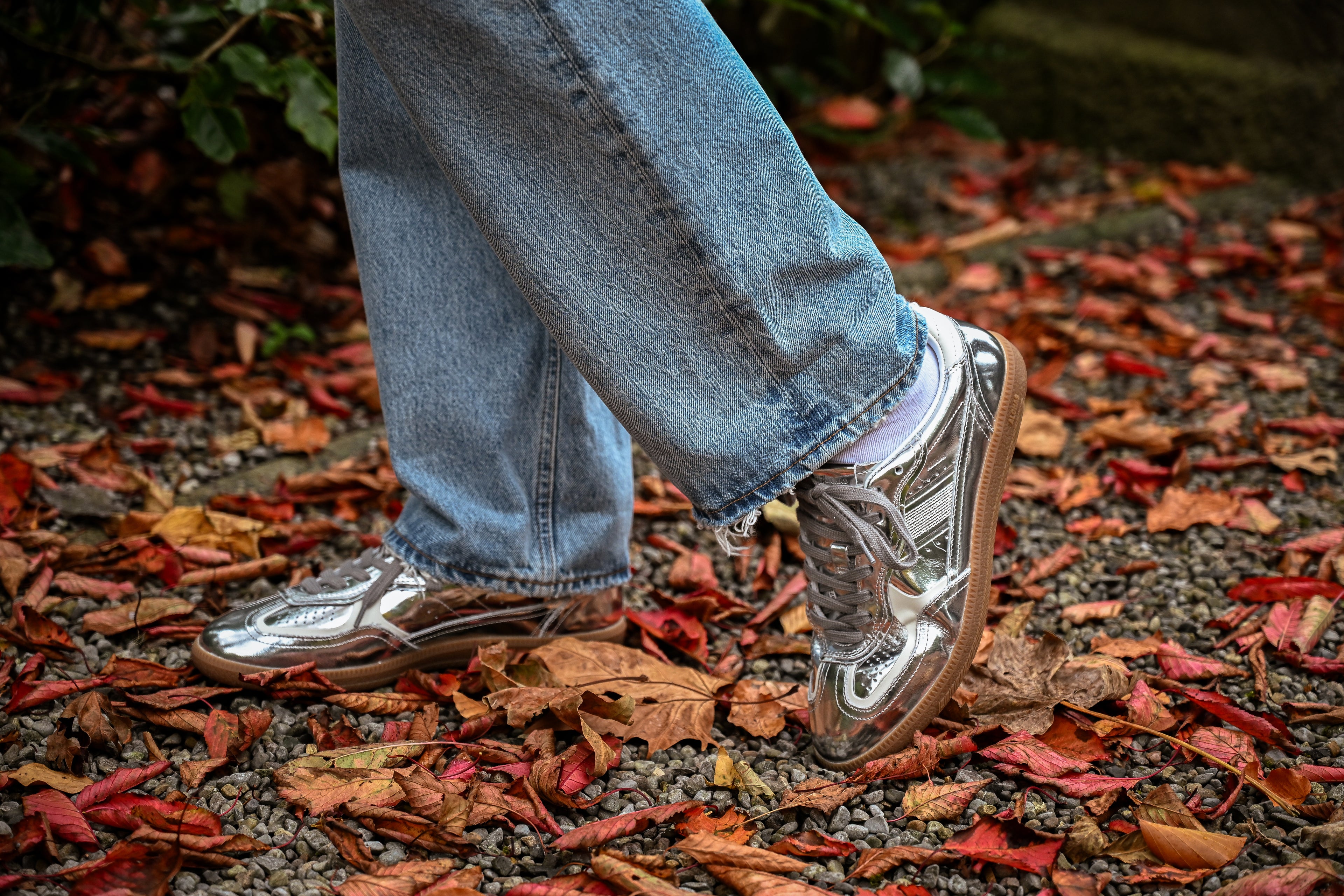 TB490 Rife Shimmer Sneakers in Silver Cream Leather