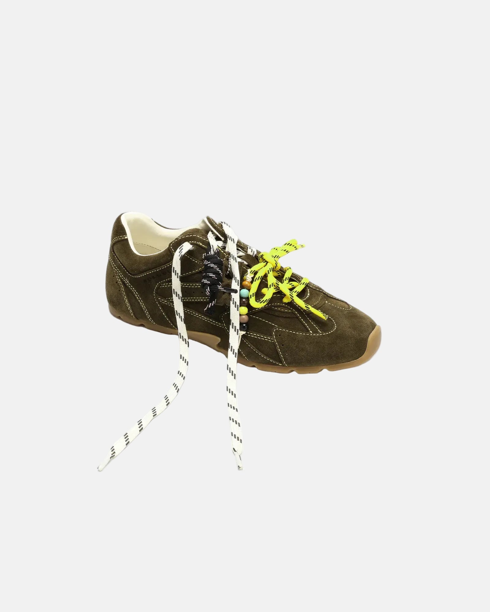 Introducing the ATLAS sneaker, debuting in 2025 with a bold, dynamic design that is redefining the sneaker landscape. Crafted from a mix of luxurious leather, suede, and exotic pony hair, the ATLAS features a distinctive and eye-catching upper, paired with leather and textile linings for a comfortable, breathable fit. The leather insole adds an extra layer of plush comfort, while the ultra-lightweight, flexible rubber outsole makes each step feel like walking on clouds. Showcasing a hanging Nokwol charm and striking contrast mix-match laces, the ATLAS stands out as the ultimate IT girl sneaker. Designed to turn heads, the sneaker is offered in a variety of vibrant colourways and fun, exotic materials, making it perfect for elevating any outfit. The bold contrast stitching highlights its modern and edgy appeal, ensuring ATLAS is a statement piece you won’t want to miss—this is the sneaker that’s bound to level up your footwear game.