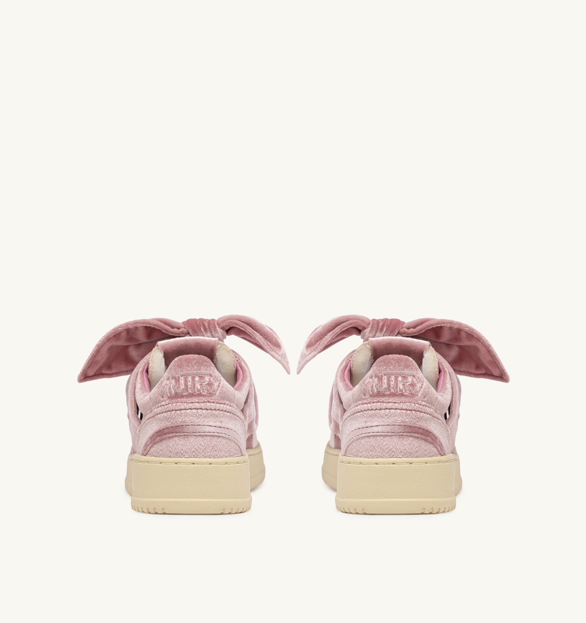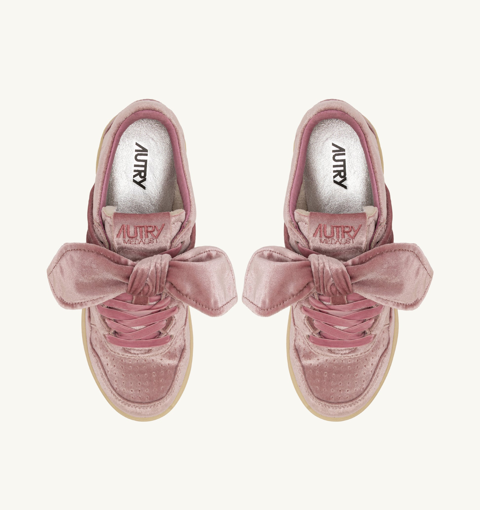 Autry presents Bloom — a capsule collection celebrating femininity in all its shades. The brand’s most iconic sneaker silhouettes are reinterpreted with refined craftsmanship and unexpected textures, from velvet to laminated leather, nubuck, and suede. Each design carries its own personality, defined by romantic floral embroidery, sparkling sequins, delicate crystals, bold micro-studs, or oversized bows. More than sneakers, they are statements of individuality — effortless expressions of modern femininity. This style features a rich velvet upper with matching flat velvet laces, an embroidered label on the tongue, and the signature jacquard logo. Finished with a padded collar, leather and cotton terry lining, a 2 cm raised leather sockliner, and a rubber sole (2.5–3.5 cm high). Comes with a personalized fabric shoe bag.