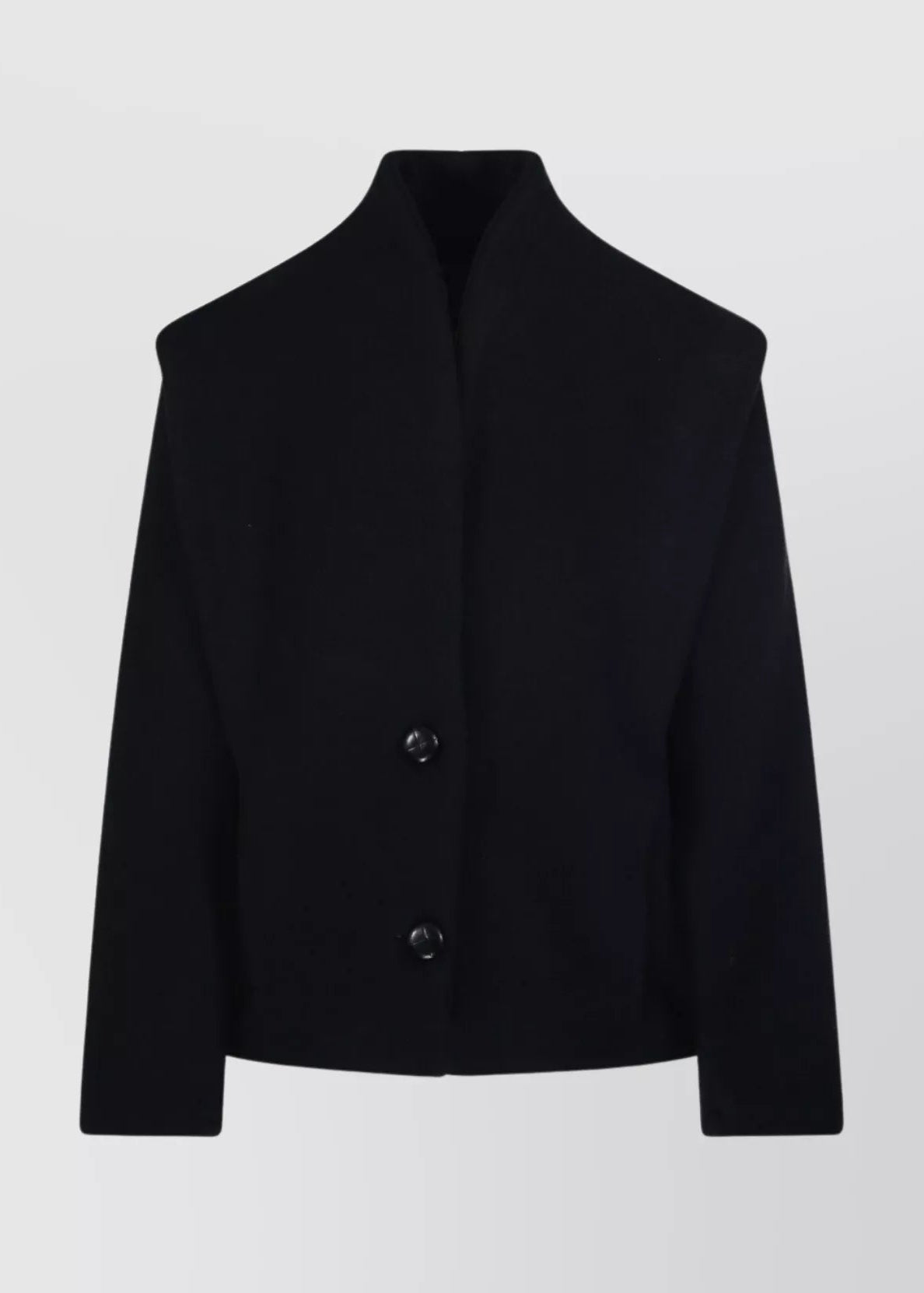 Dyogo Short Coat by Isabel Marant embodies the essence of contemporary elegance, designed for women who value refined simplicity. It captivates with a boxy, modern silhouette featuring slightly extended shoulders and long, subtly tailored sleeves. The minimalist design is accentuated by a high, vertical stand-up collar in place of the classic lapel, while two large, round buttons with decorative stitching create a unique focal point.