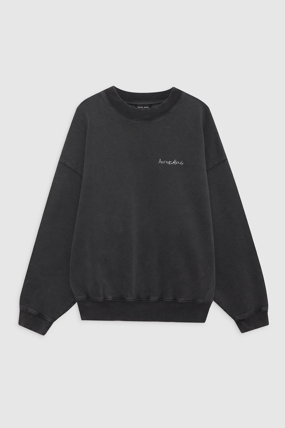 The Jaci Sweatshirt Lyrics is an oversized crewneck pullover made from midweight 100% cotton French terry in washed black. This cozy separate features a handwritten graphic screen printed at the wearer's left chest and handwritten "Sin" lyrics off of Anine's album THERAPY across the back in contrast white.
