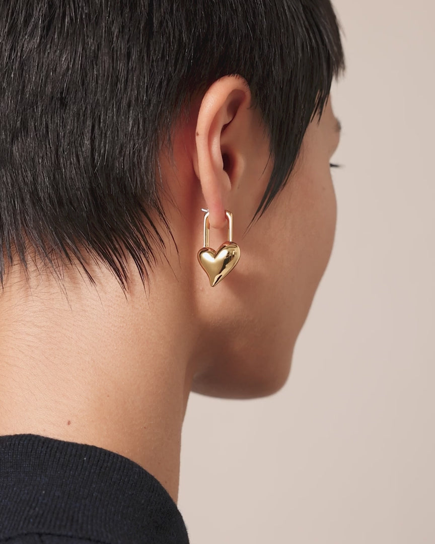 Padlock Heart Earrings in Gold