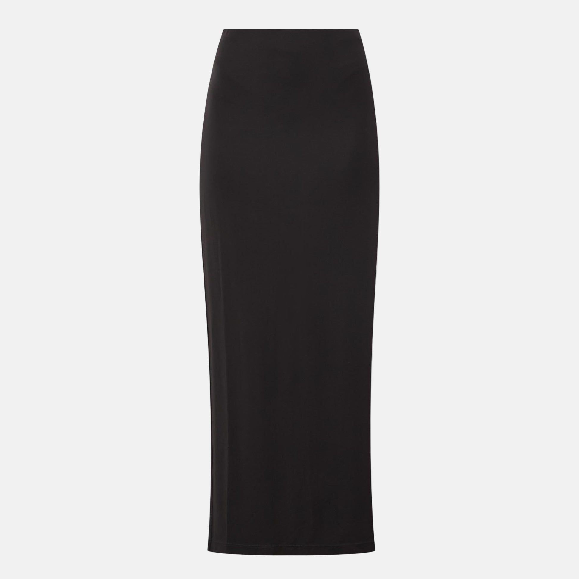 A full-length skirt crafted from a midweight viscose-jersey blend with a smooth, drapey feel and subtle sheen.