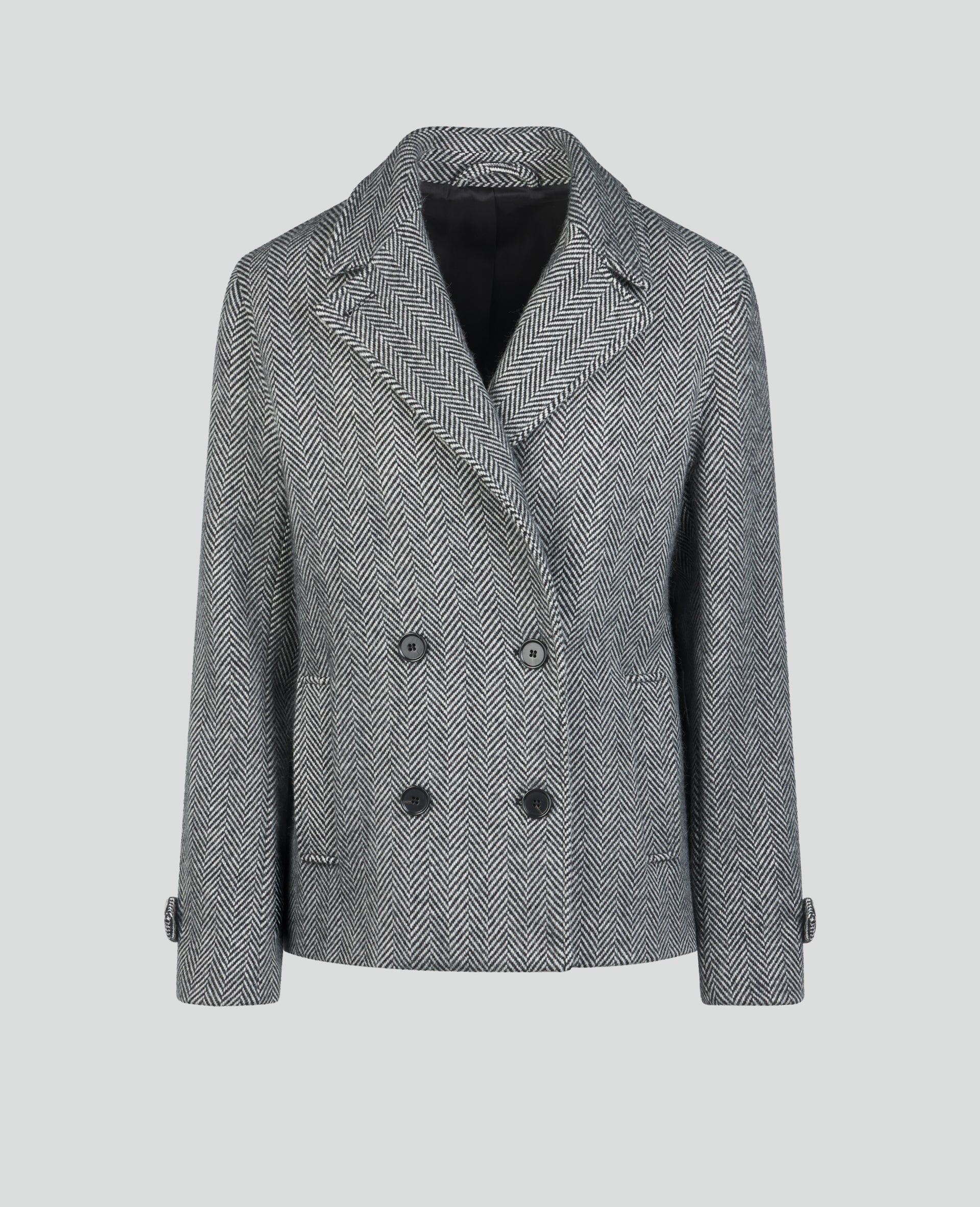 The Saoirse Double-Breasted Coat embodies timeless craftsmanship and contemporary design. Expertly crafted in a Black & White Herringbone aplaca blend, this coat is designed and woven in our mill in Donegal. A true reflection of our heritage, this women's Donegal tweed coat offers exceptional style and quality.