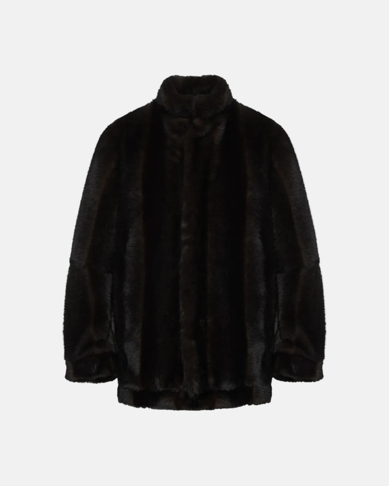 This straight-cut faux fur jacket balances plush texture with precise construction. The stand collar frames the neckline neatly, while dropped shoulders lend a sculptural ease to the silhouette. Concealed fastenings maintain a minimalist finish, amplifying the quiet contrast between softness and structure.