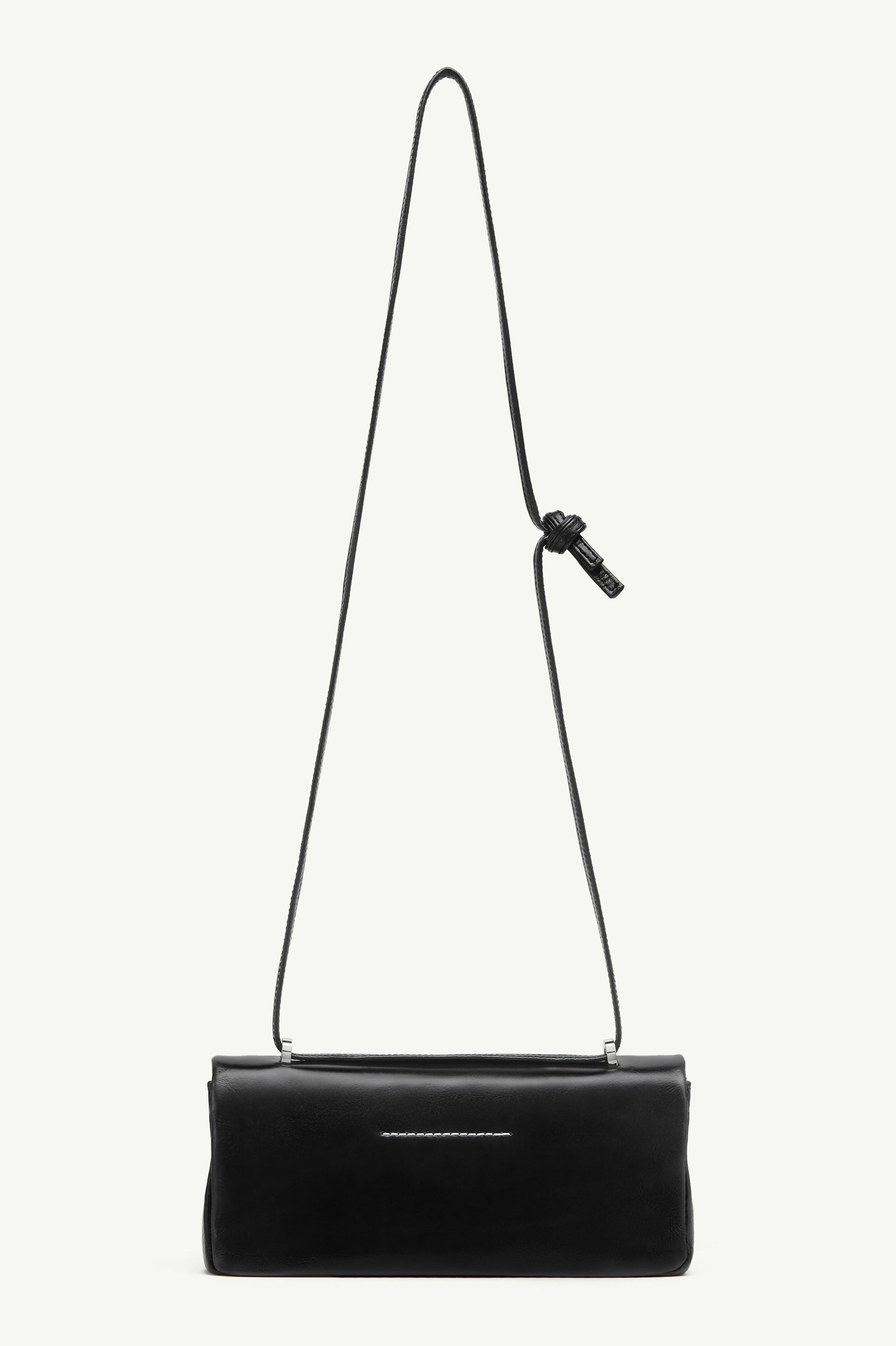 This structured rectangular bag brings together archival inspiration and modern refinement. Its clean minimalist design is defined by a subtle embossed finish that gives a polished sheen, while an adjustable handle allows for versatile styling whether carried by hand or over the shoulder. A study in balance, it pairs timeless sophistication with everyday functionality.