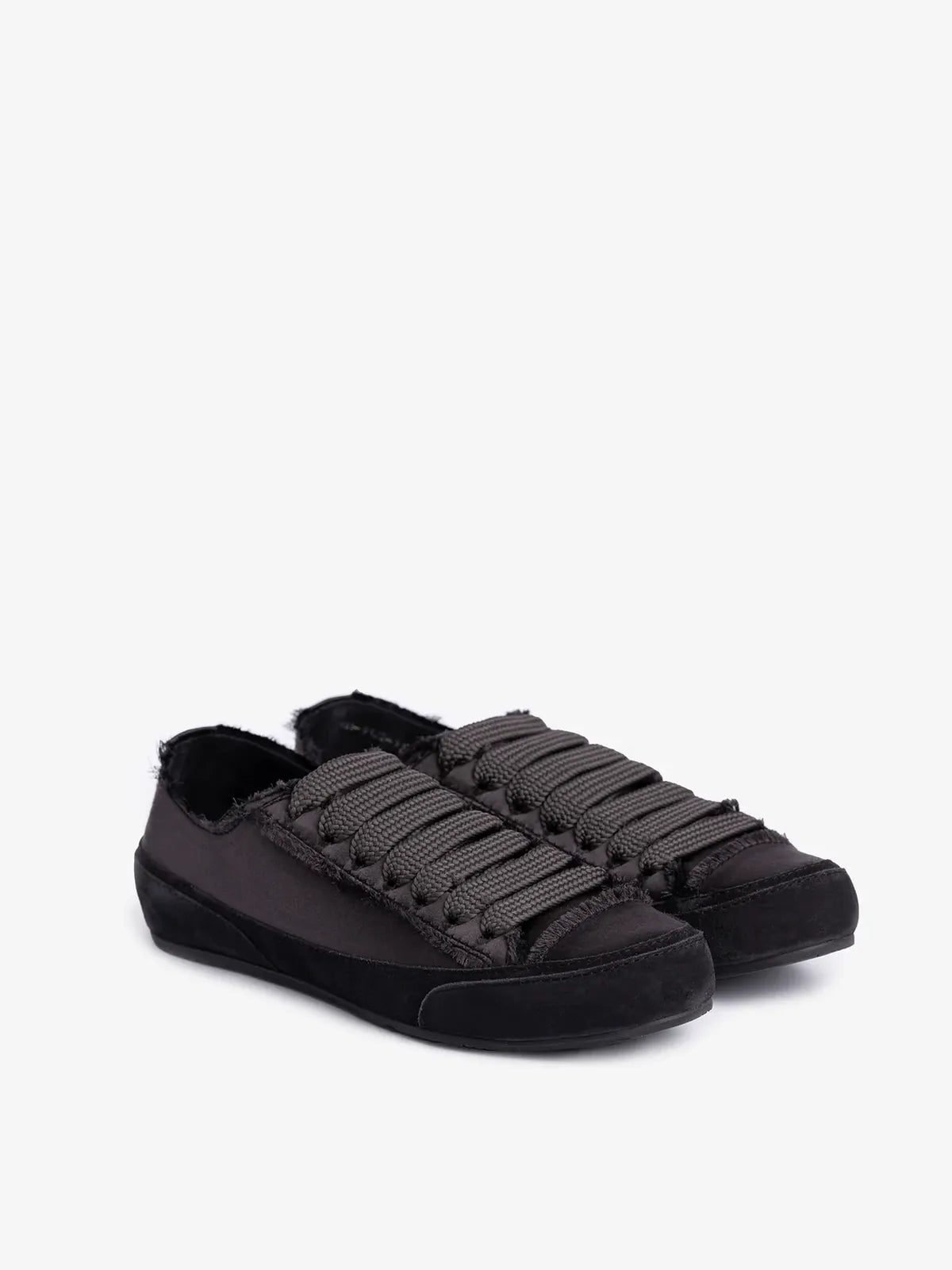 Cult fave sneaker Parson has become an iconic Pedro García silhouette, exhibiting one of the venerable shoemaker's emblematic signatures: lustrous frayed silk satin - the sensuous material is unexpectedly treated with a raw edge finish, liberating it from staid evening wear conventions. Crafted from 24 individual pieces, the profile notably features split suede trim and anatomical insole for supreme comfort.