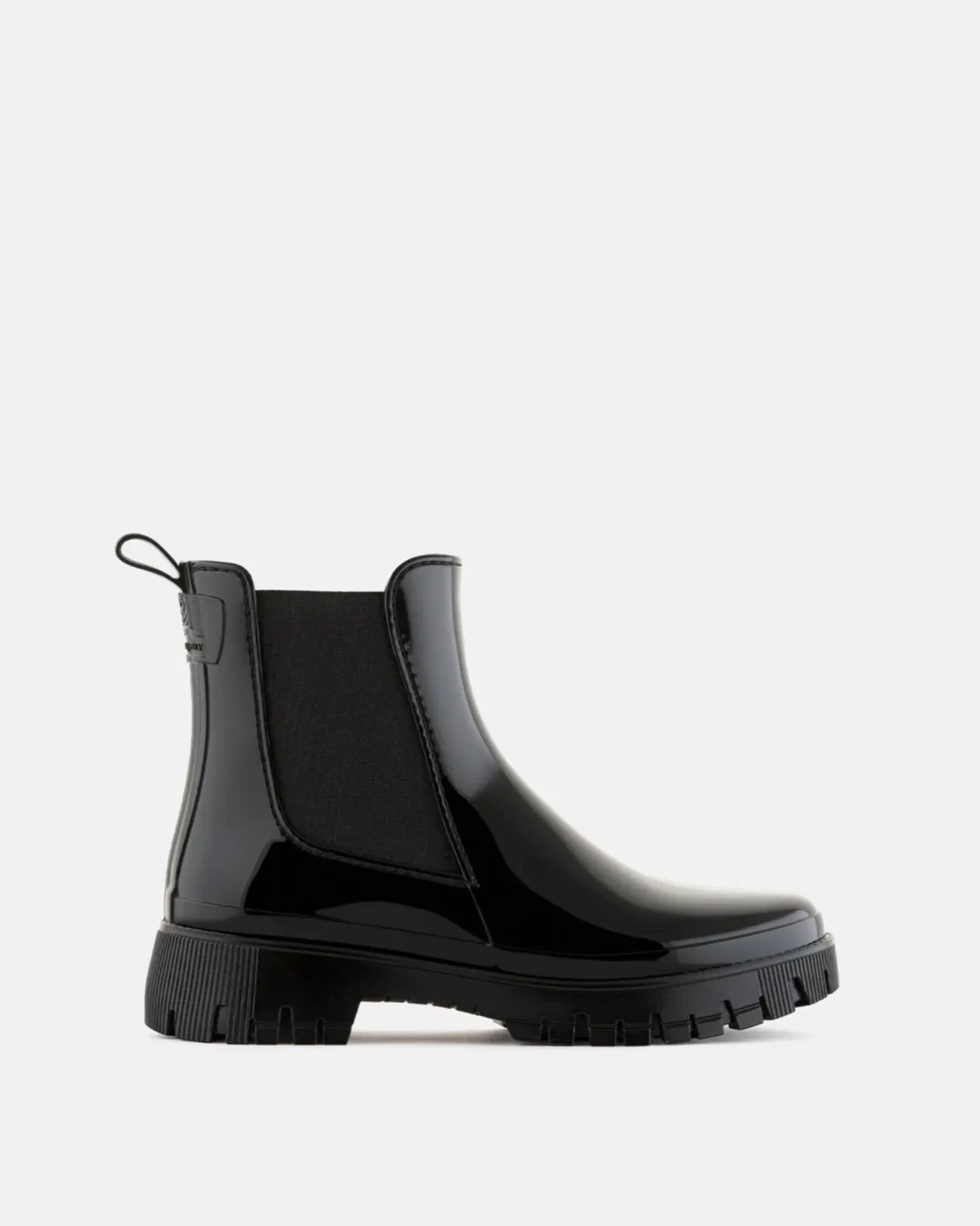 A new Winter essential, these ladies' ankle boots incorporate recycled materials in a full injection process that creates a complete monobloc piece. Practical but made to have a lower impact on the planet, from their production to further recycling in the future. Give way to these mighty rain black boots, with a wide fit, that can be your year-round companion, leaving its sweet citrus scent everywhere you go. Always vegan and produced in Portugal using renewable clean electrical energy.