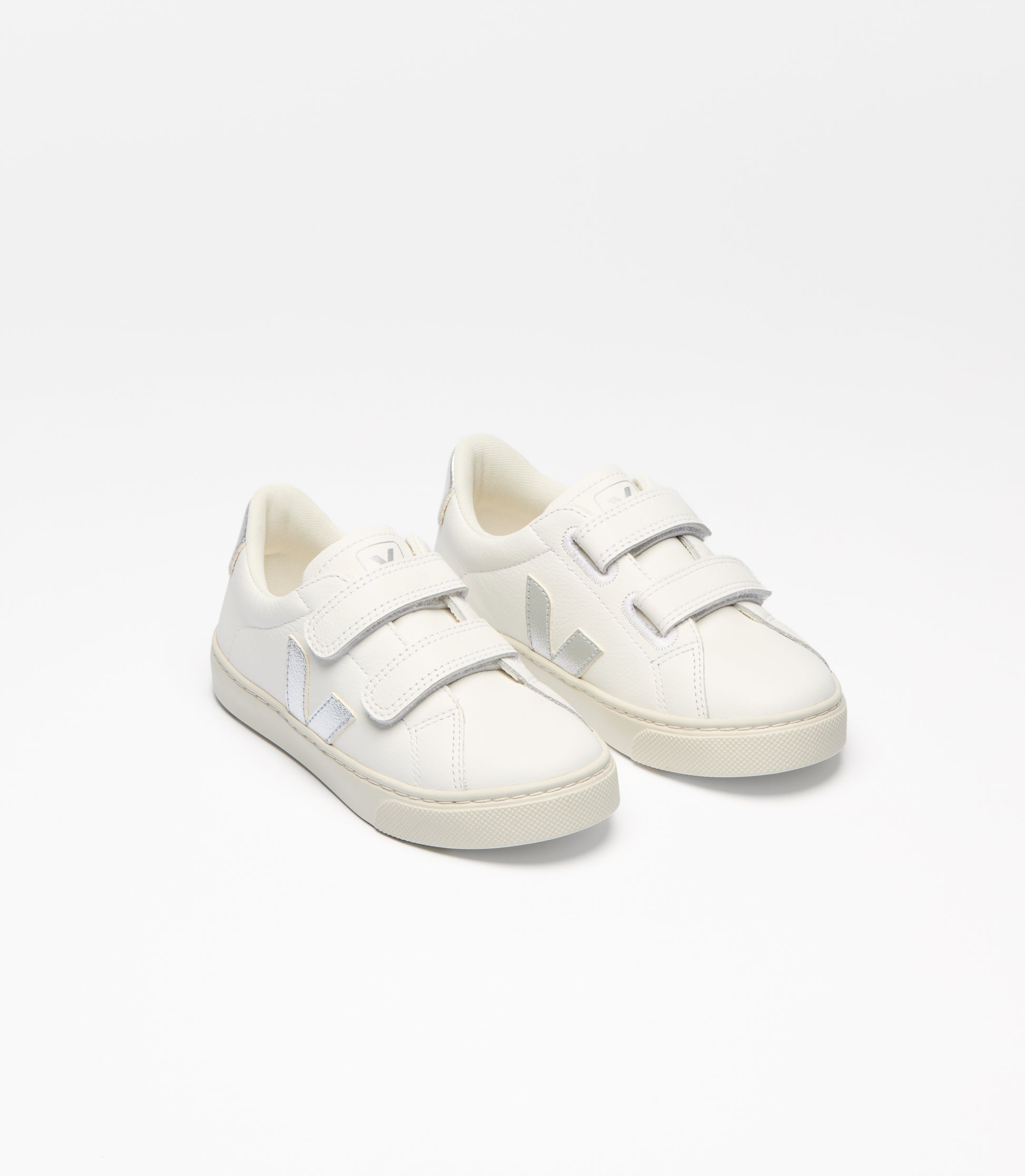 Kid's Small Esplar Leather Sneakers in White and Silver